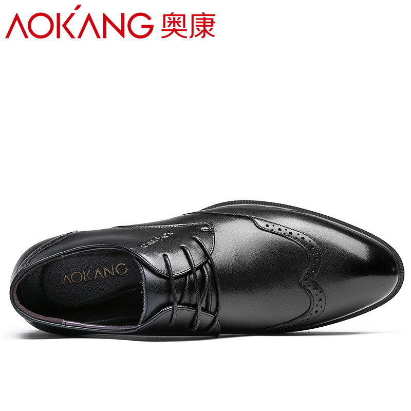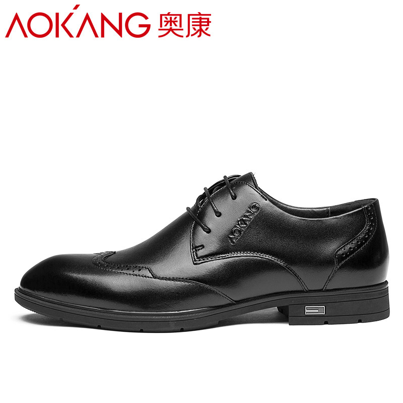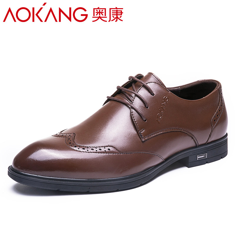Aokang men's shoes spring brogue carved leather shoes leather business casual men's trendy shoes British style shoes