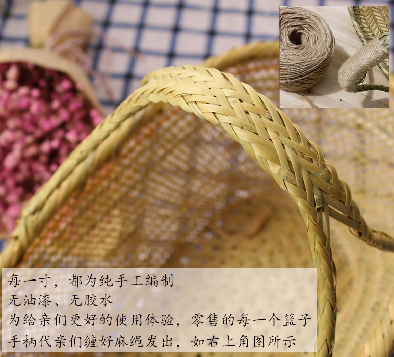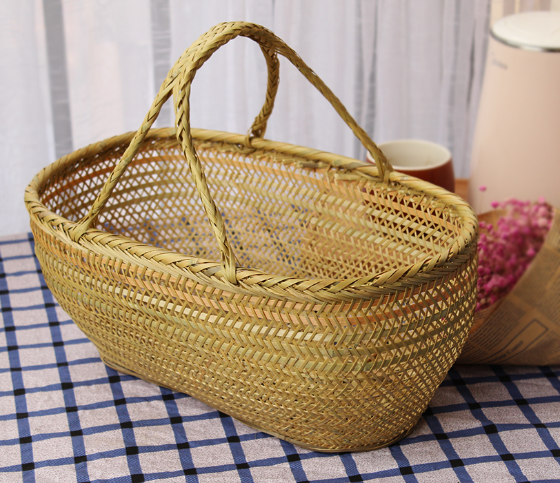 Household bamboo basket portable hand-woven grocery shopping basket bamboo braided egg rattan rectangular shopping fruit basket small