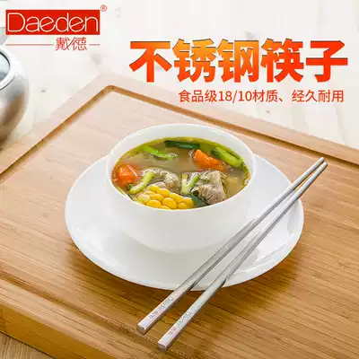 Germany Dade 18 10 stainless steel chopsticks household non-slip anti-mold square chopsticks high-end chopsticks family 6 pairs