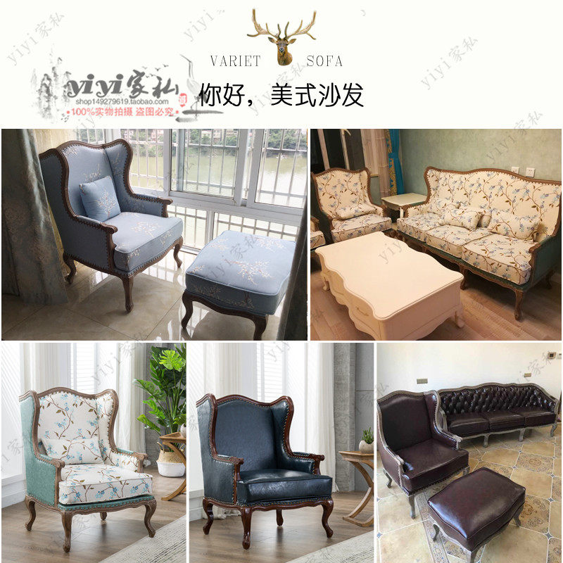 American European-style single sofa chair solid wood furniture New vintage sofa chair vintage make old sofa Tiger chair