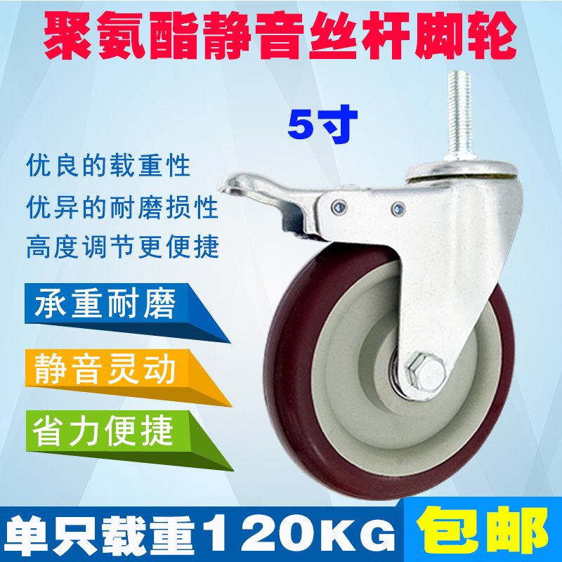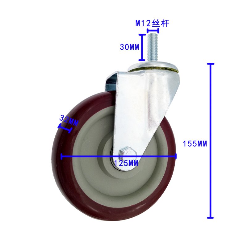 M12 screw universal wheel 5 inch heavy screw caster silent wheel brake wheel screw wheel shelf equipment load bearing