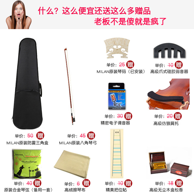 Milan Imported Solid Wood Handmade Violin Children Adult Beginners Professional Level Test Playing Instruments