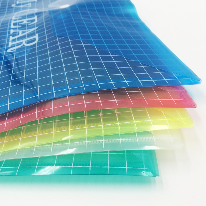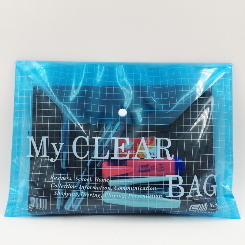A4 file bag Transparent button button plastic business information bag Waterproof storage bag Student paper bag plaid bag