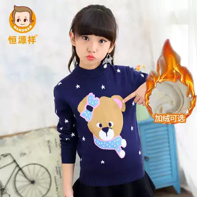 Hengyuanxiang girl sweater plus velvet thickened cotton autumn and winter children foreign school children knitted inner Sweater Girl