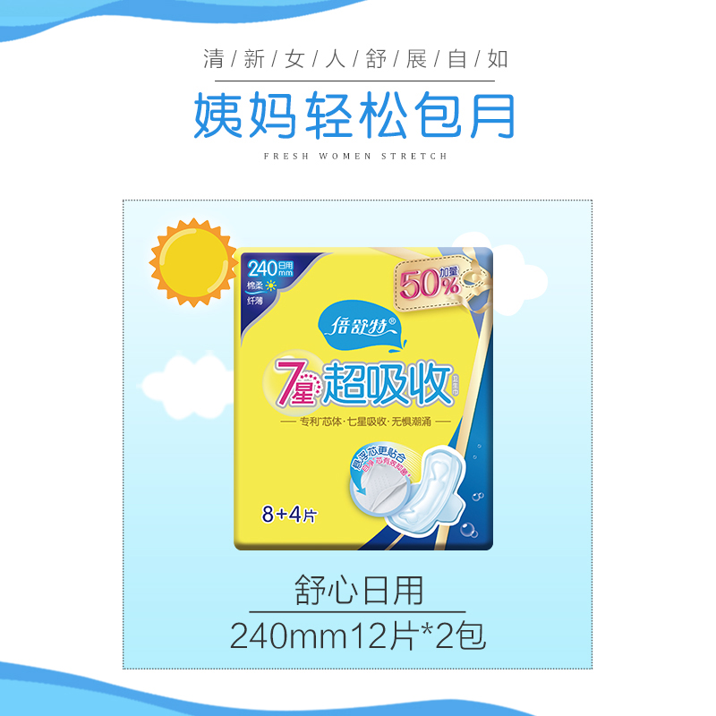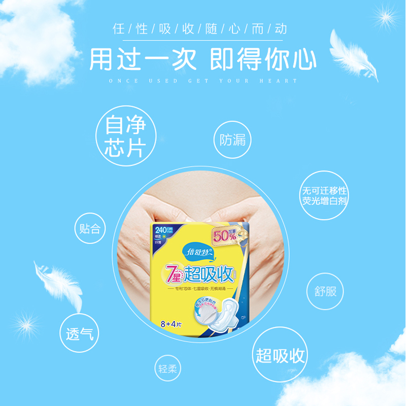 Best 7-star self-cleaning core sanitary cotton cotton soft skin-friendly aunt towel super absorbent daily use 240mm official