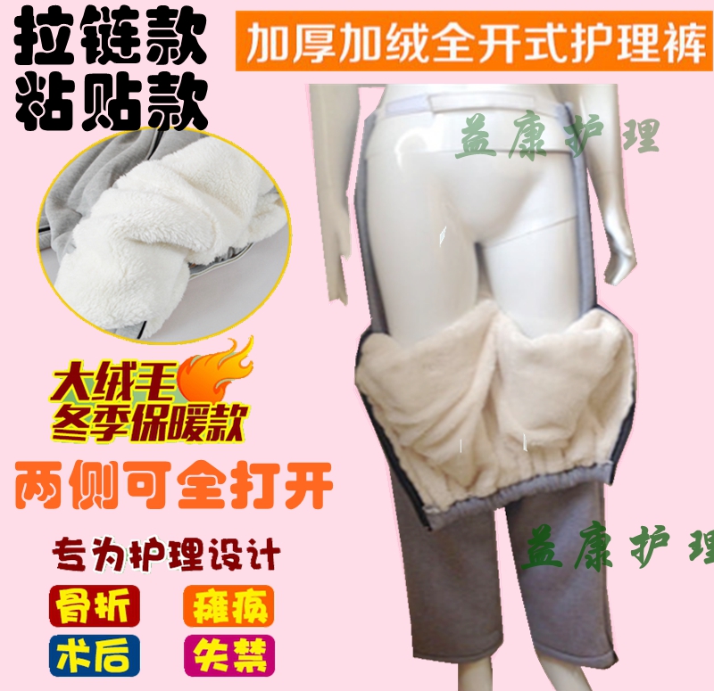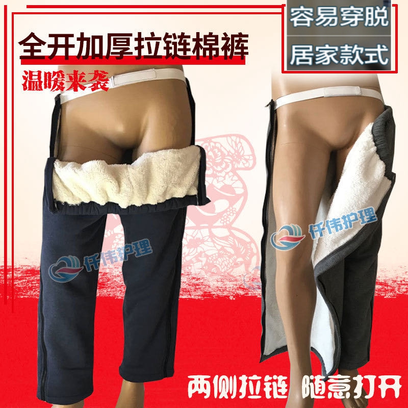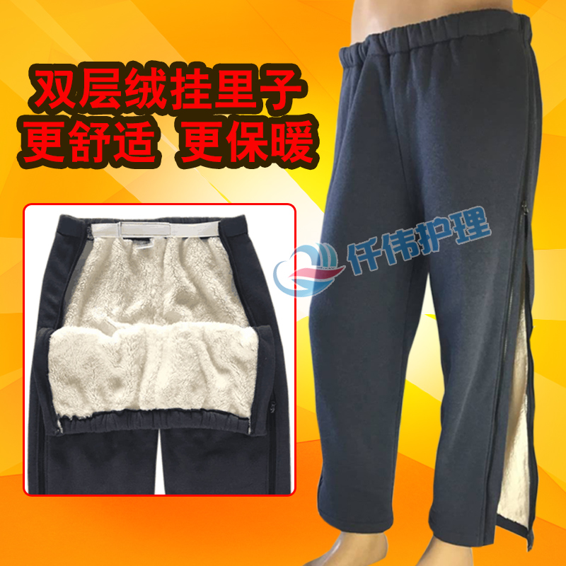 Easy to take off and easy to wear hospital gown nursing pants fracture paralyzed patient clothes men's and women's full-open pants plus velvet thick clothes