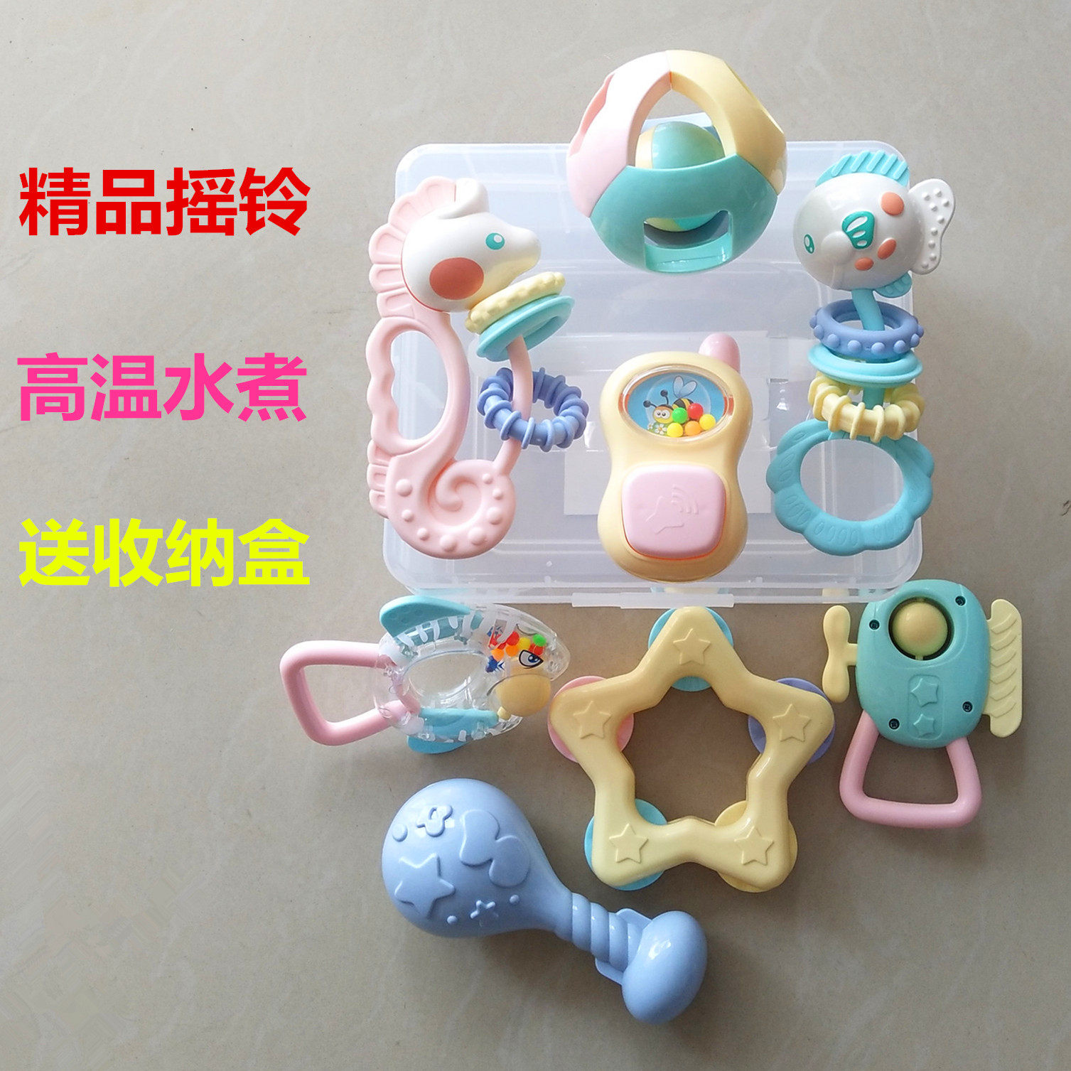 Baby teether rattles can be boiled and disinfected in high temperature water 0-1 years old baby hand ball rattles can bite toys