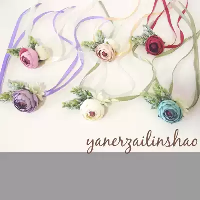 Blue corsage Blue wrist pollen color corsage Pink wrist flower Purple corsage Purple wrist flower Red corsage Red wrist flower This batch of apricot flowers is lighter in color Champagne apricot hand flower