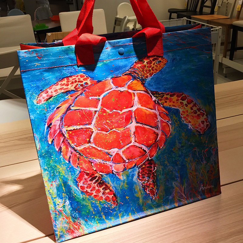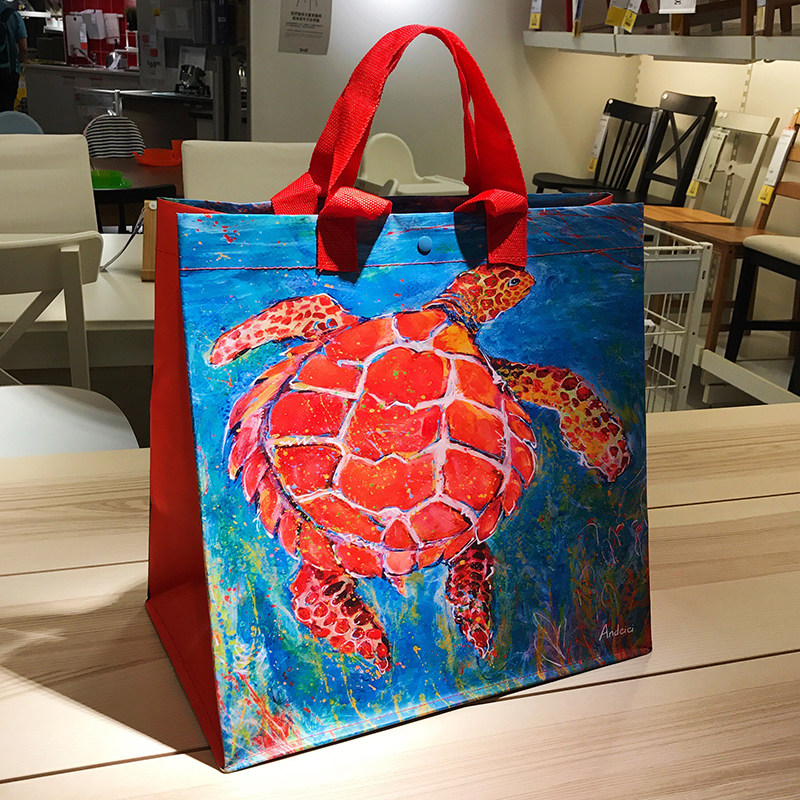 European and American oil painting mysterious turtle Waterproof storage shoulder large capacity portable travel bag Environmental protection shopping bag women's bag