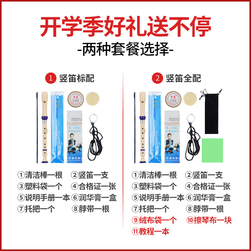 Chimei treble German eight-hole six-hole straight flute 8-hole student beginner Adult straight flute 6-hole Children's introductory flute