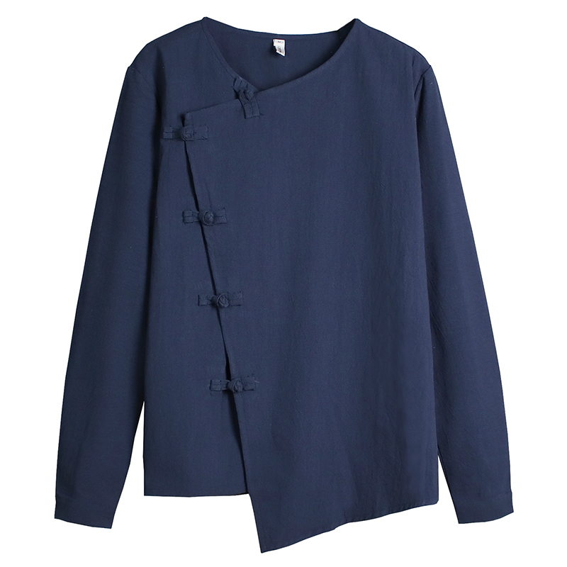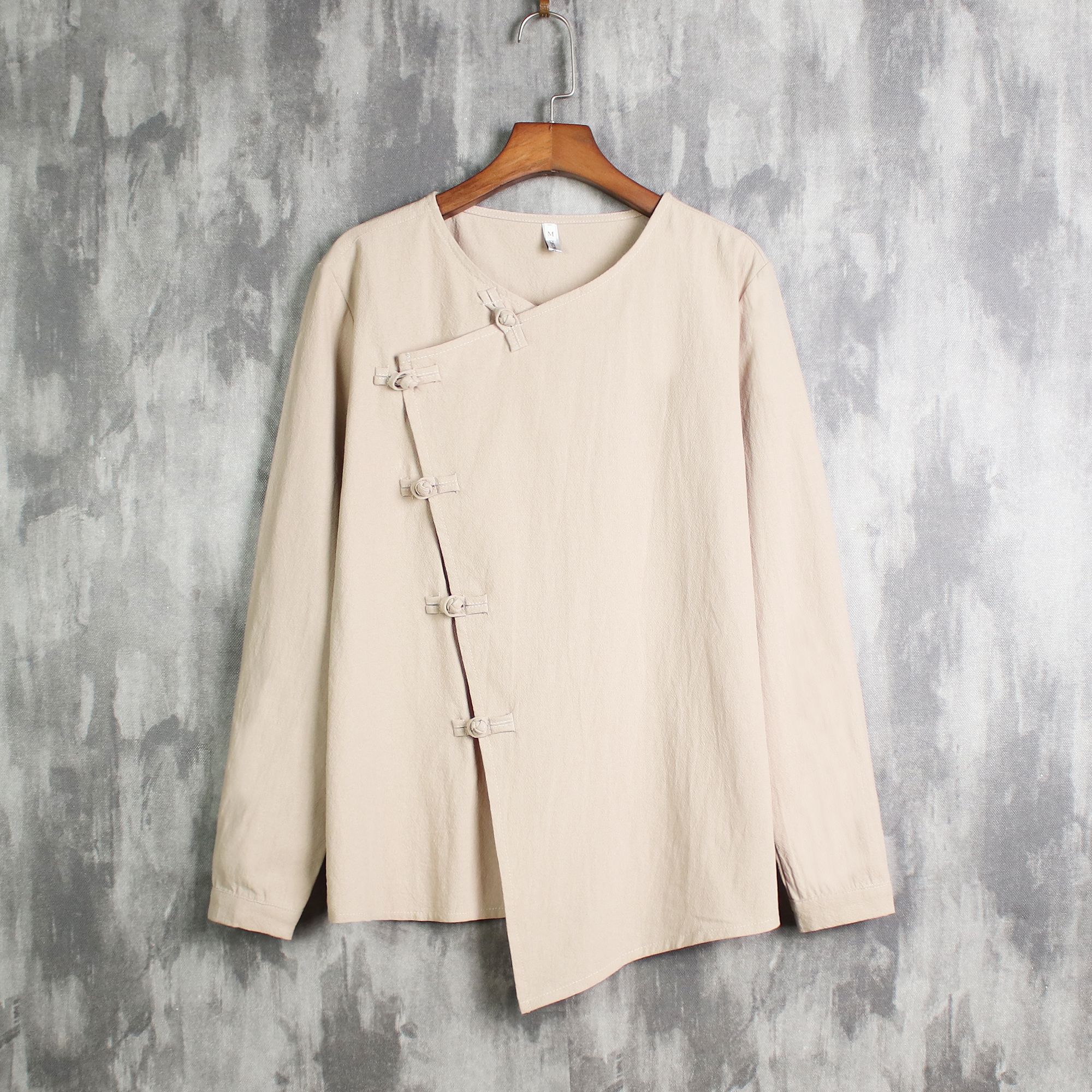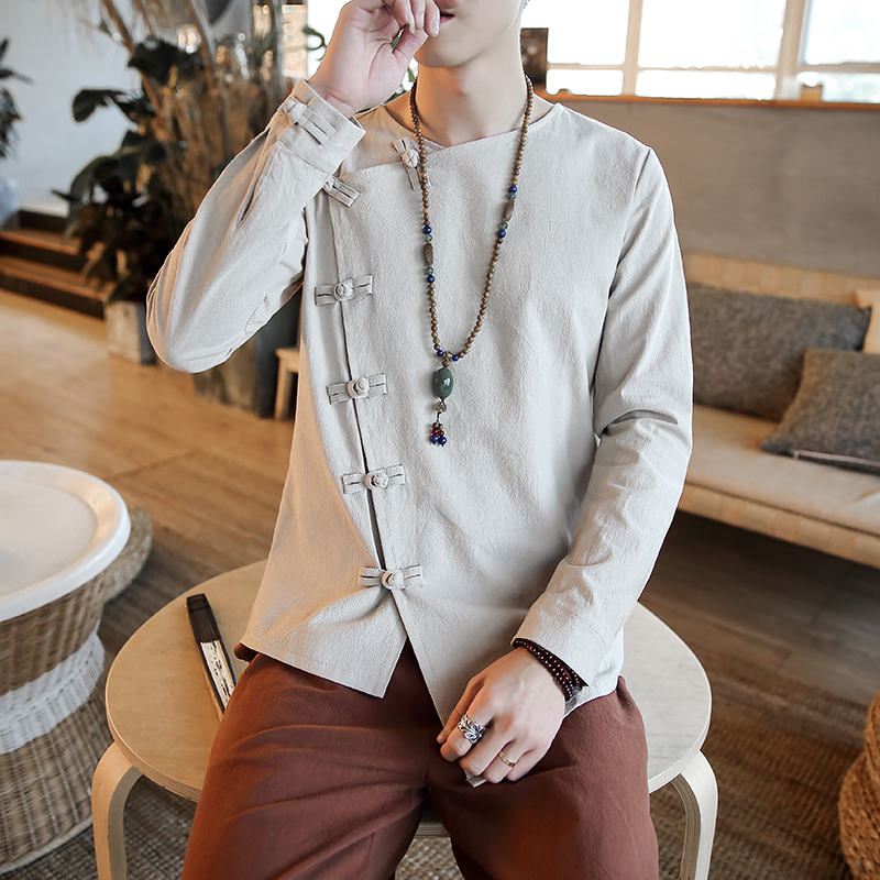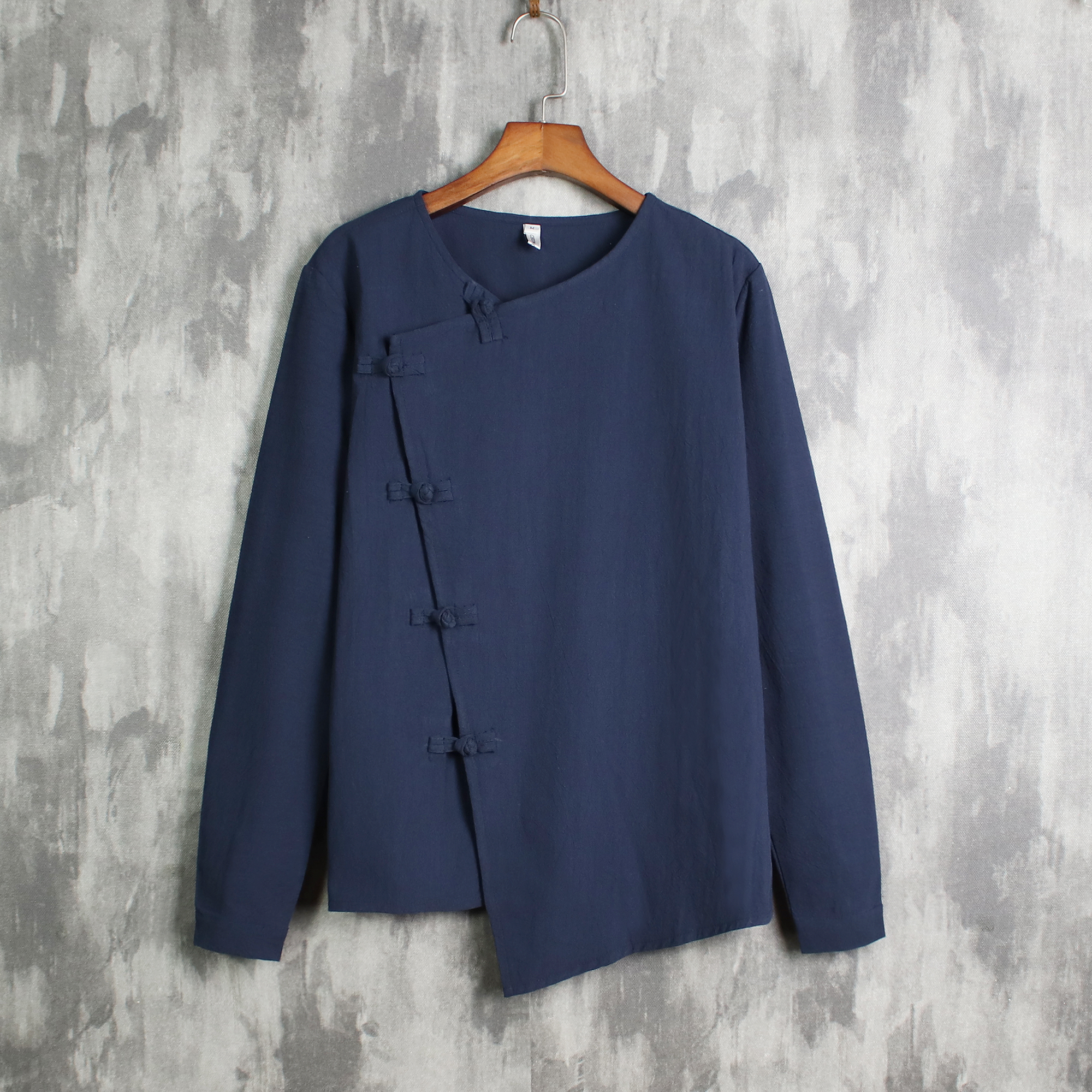 Chinese style men's slant lapel button shirt National style clothing Chinese retro casual shirt Men's base shirt autumn