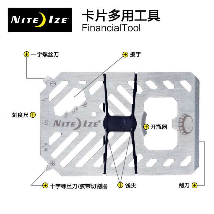 Nay love NiteIze Stainless Steel Multifunction Money Clip Banknote Clip Card Holder card Portfolio Multi-functional Wanna Card