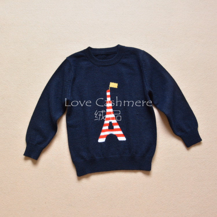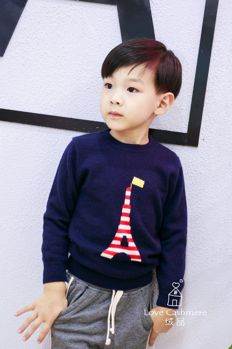 Love velvet J's same style Looking up at the iron tower European and American style cartoon sweater Boys pullover cashmere sweater