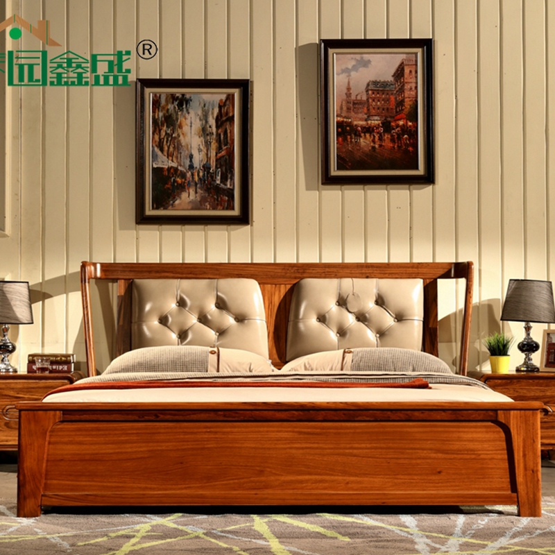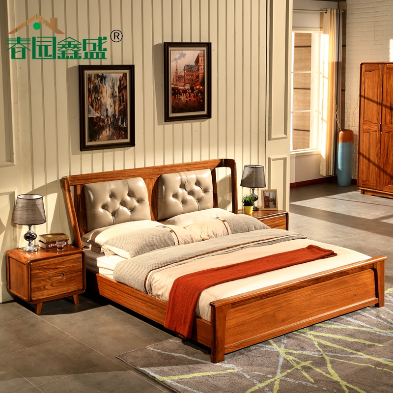 Full - solid wooden furniture furniture double with soft - soft - lean furniture of northern European high - box storage