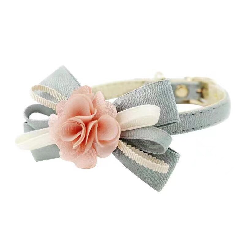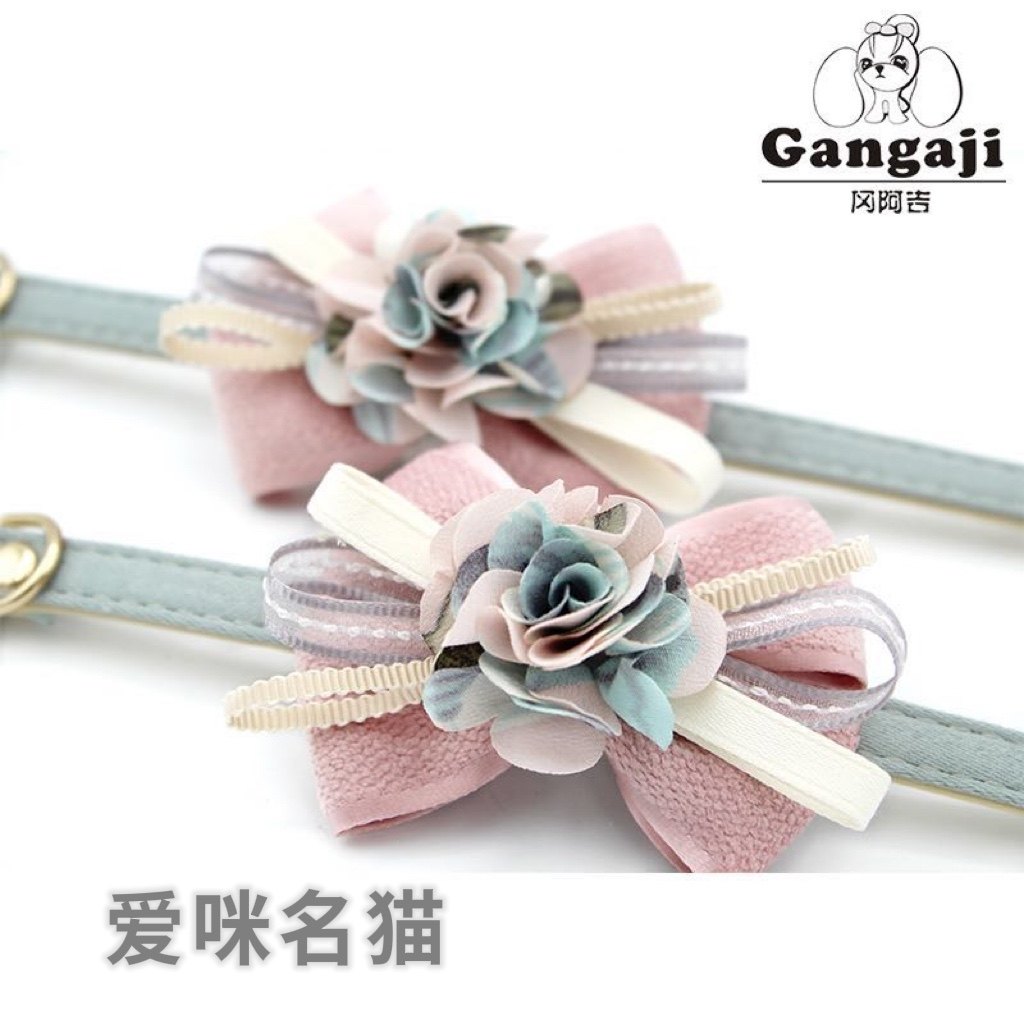 Gaokaji Korean tie net red inlaid flower neck ring Pet decoration cute neckline with cat dog anti-loss traction rope Item ring