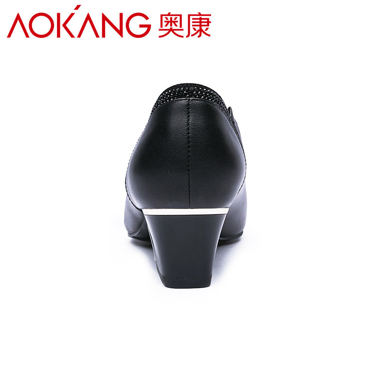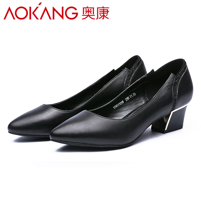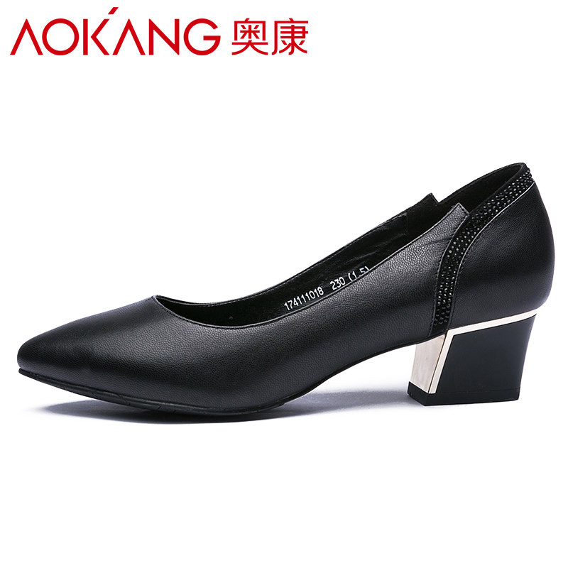 Aokang Oconokang women's shoes 2020 New pint minimalist fashion small custard coarse heel shallow retro single shoe woman