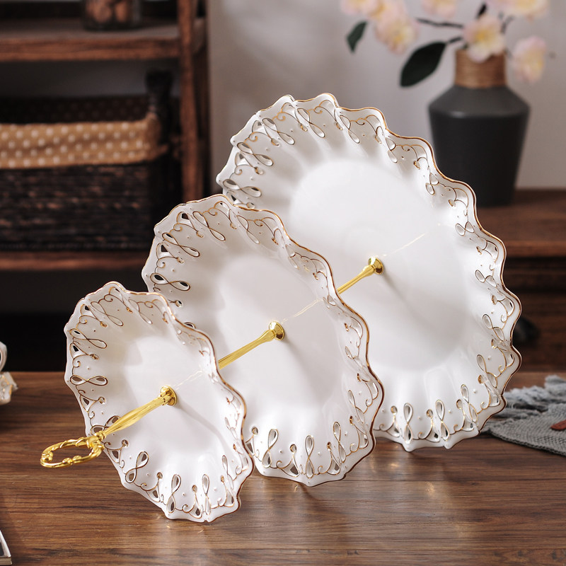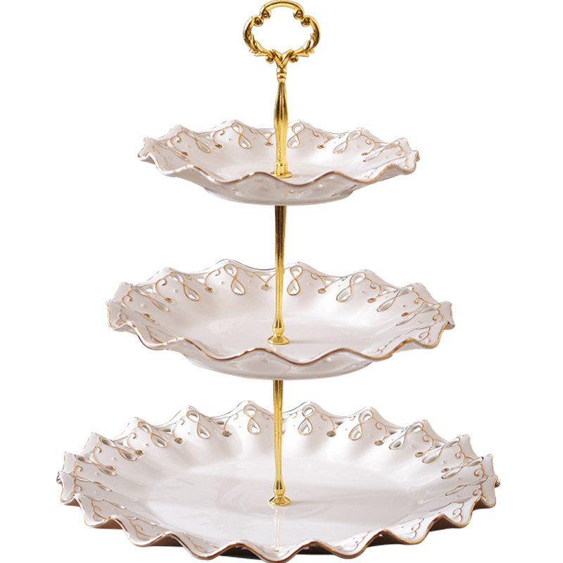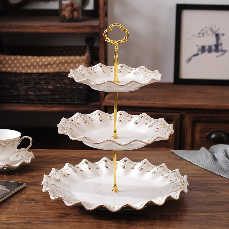 European-style hollow ceramic three-tier snack shelf English afternoon tea snack cake plate creative dessert fruit tray