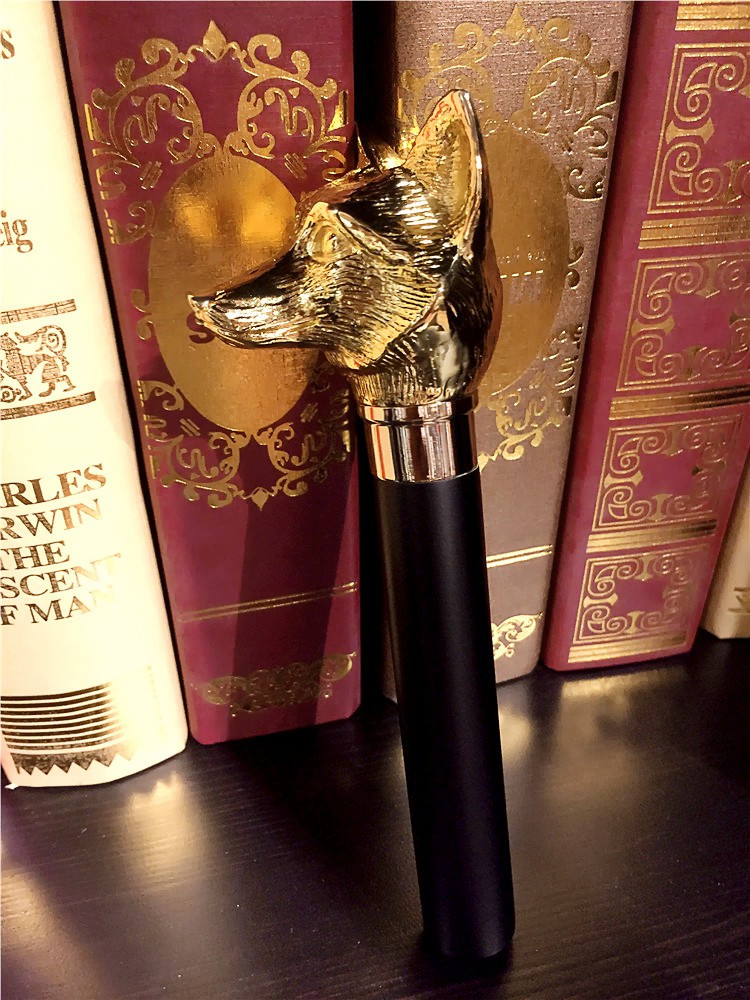 Metal fox head long handle umbrella handle business European and American luxury straight umbrella handle high-end Italian foreign trade quality accessories