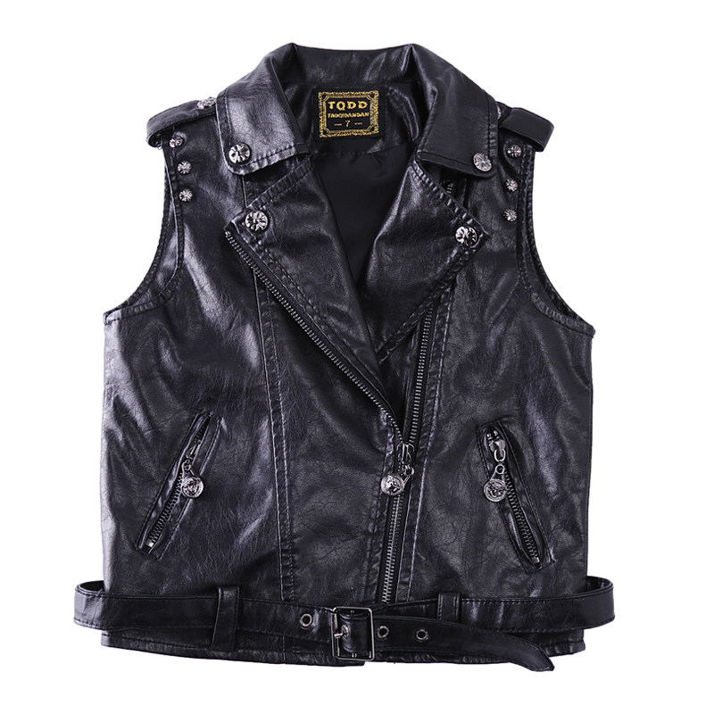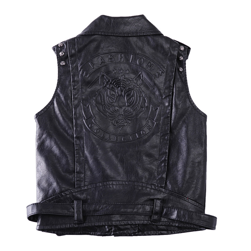 Small and medium-sized children's new children's clothing spring, autumn and winter thickened Korean version of the children's clothing new boys handsome rivet zipper leather vest