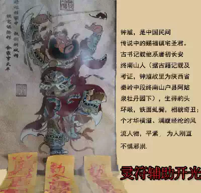 Feng Shui fortune Zhong Kui door God portrait Silk hanging painting Avoiding demons and exorcizing evil spirits Chinese painting Decorative scroll Living room town house Shangxiang