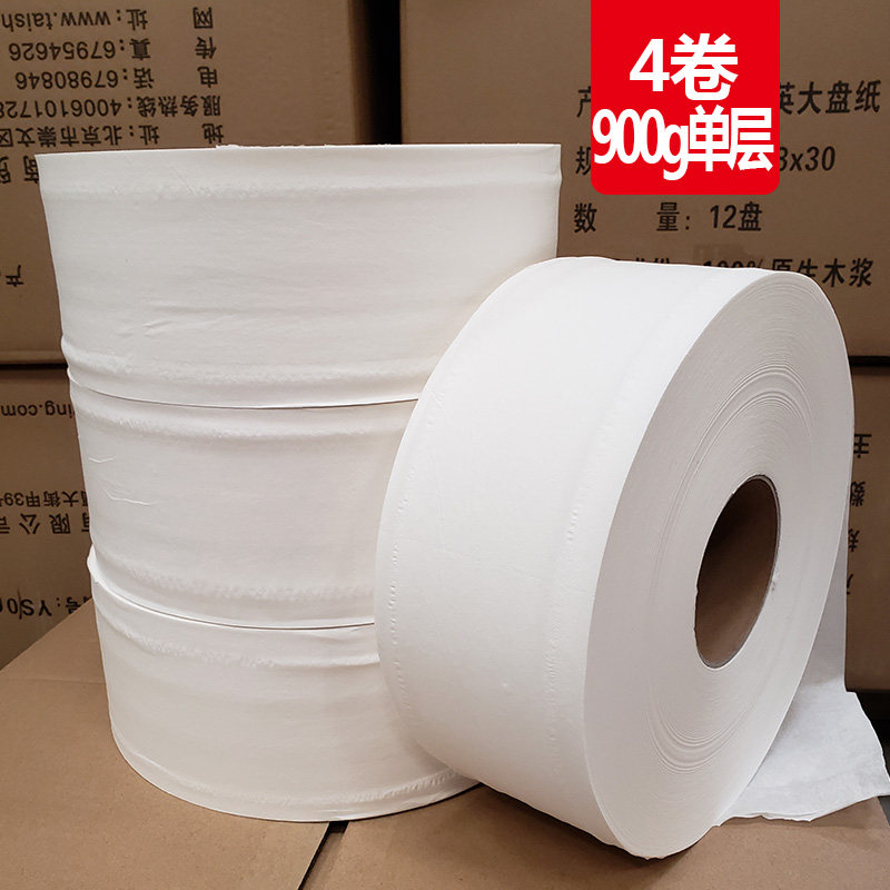 Tai Shuangying 900 gr Wood Pulp Monolayer Large Roll Paper 4 Rolls Mounted Public Toilet Paper 1 Floor Pure Wood Pulp Hotel Broad Paper