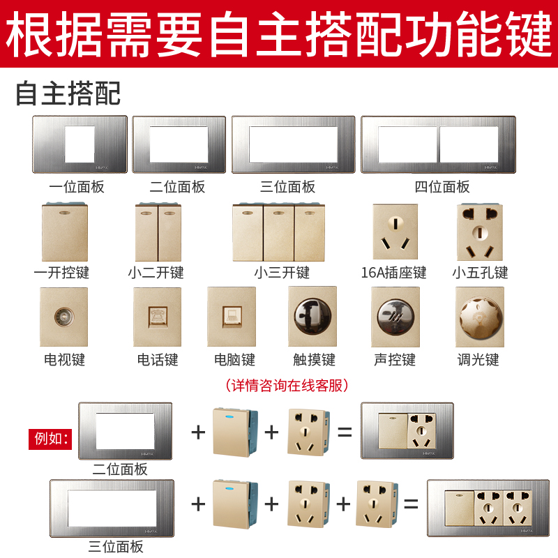 (Four Computers 15 Holes) International Electrician 118 Type Switch Socket Panel Champagne Gold Stainless Steel fifteen Holes