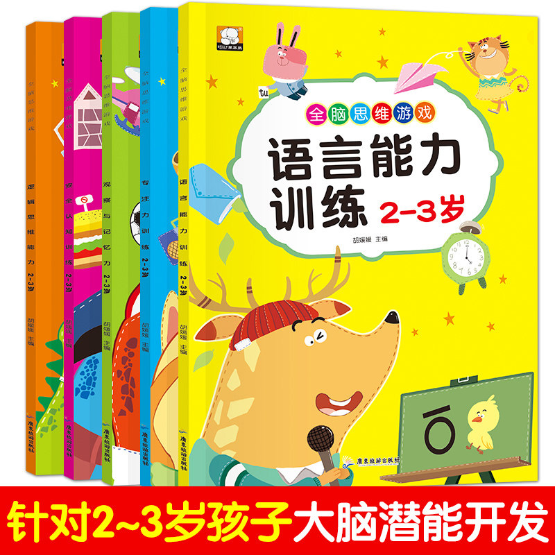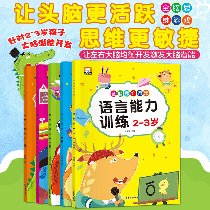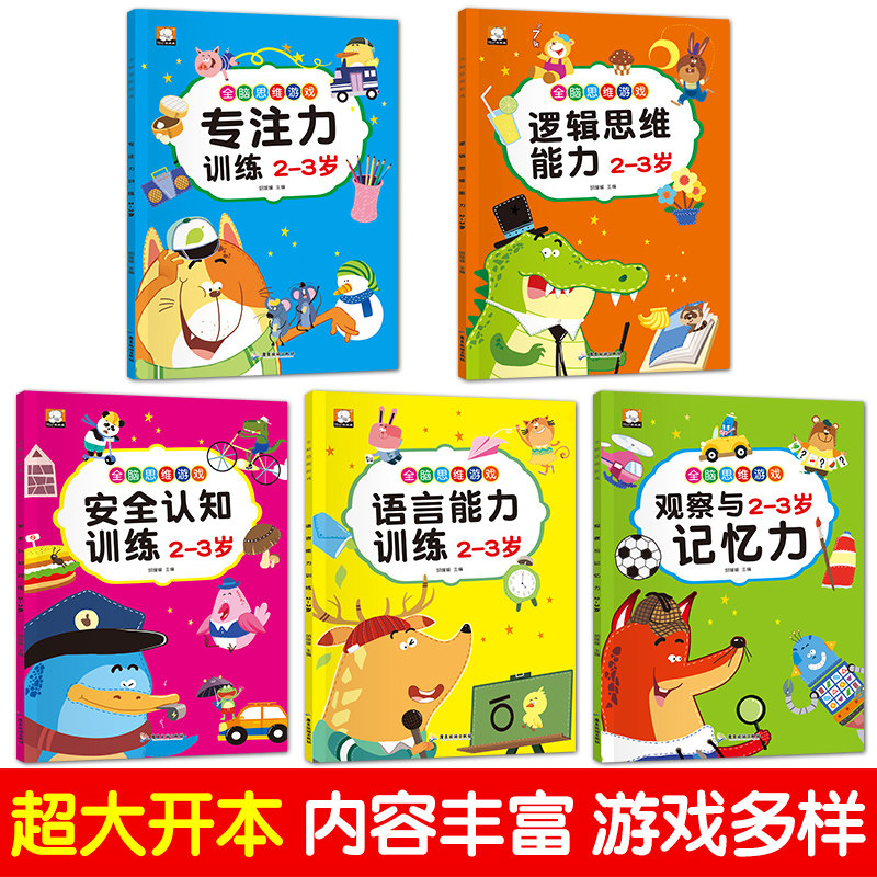 A full set of 5 books of whole-brain thinking logic thinking game book 2-3 years old brain potential development to stimulate brain potential content rich games and difficulties from shallow to deep intelligence