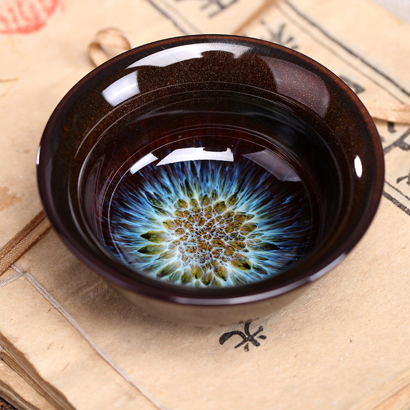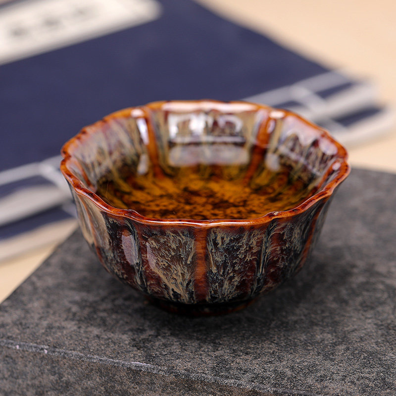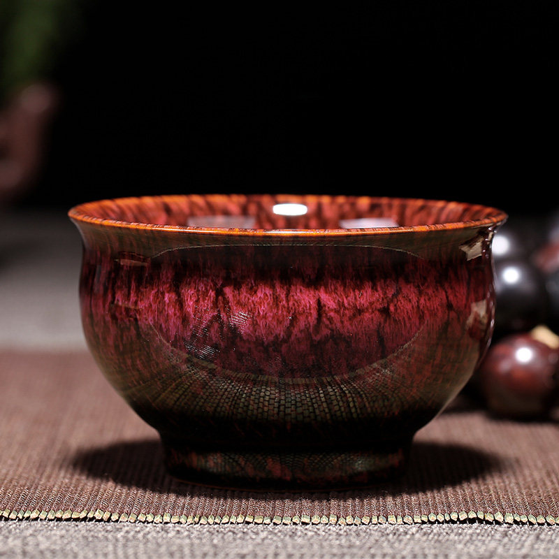Classical red Tianmu glaze open cup, dark agate red rhomboid cup, stone pattern rhomboid cup, deep sea blue Tianmu glaze hat cup