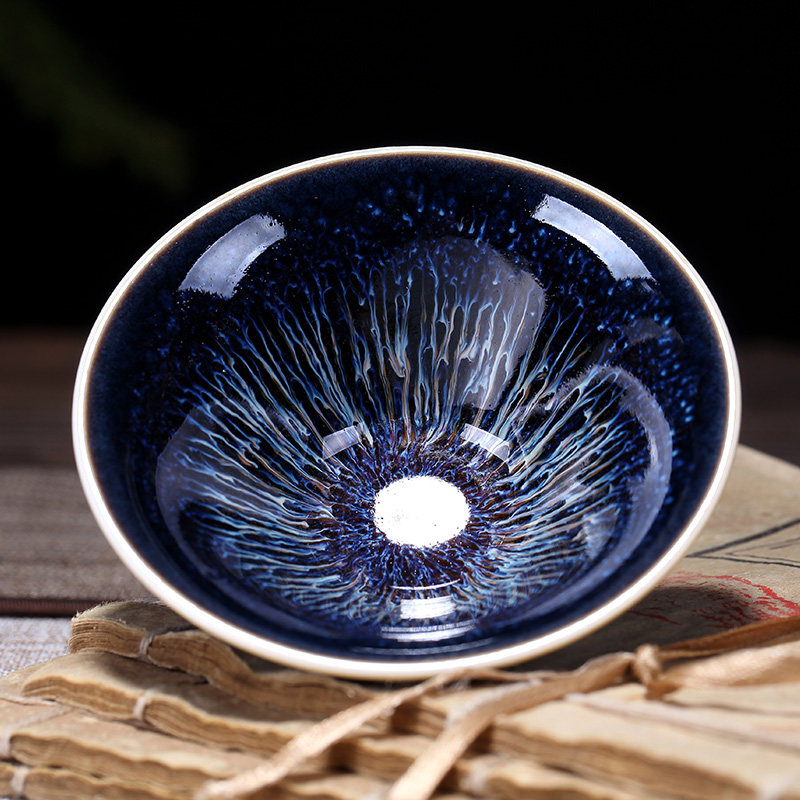 Senyu ceramic small teacup Tianmu glaze Jianzhan master cup Kiln-changing kung fu tea set retro household teacup
