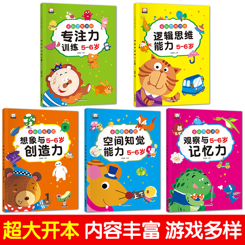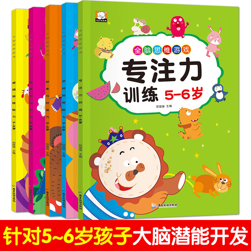 Full set of 5 volumes All-brain development game logic thinking game book 5-6-year-old brain potential development left and right brain balanced development to stimulate brain potential content rich game diverse difficulty caused by shallow depth