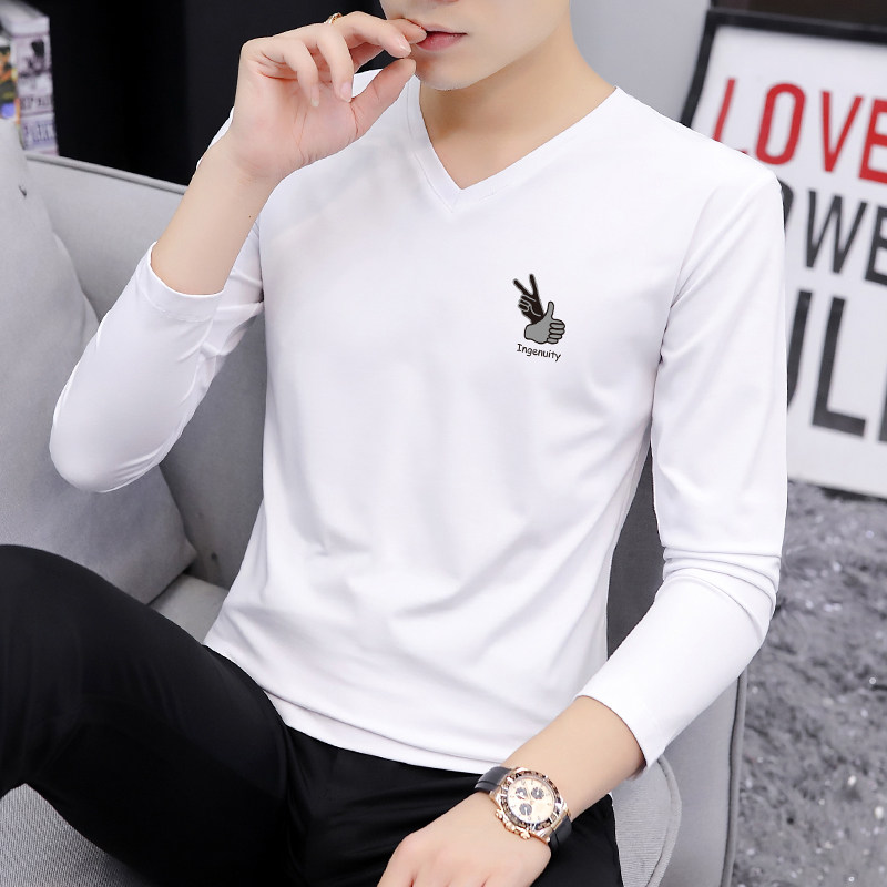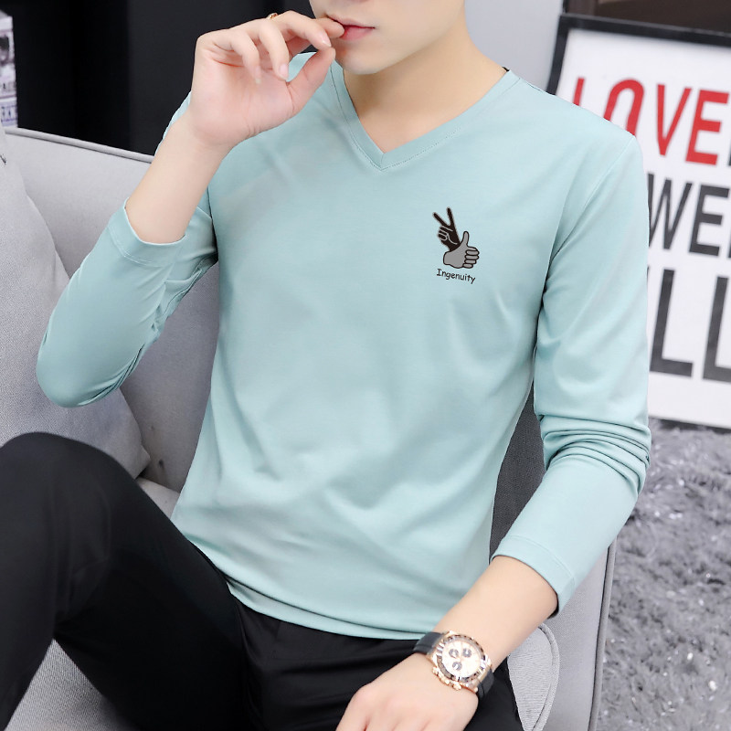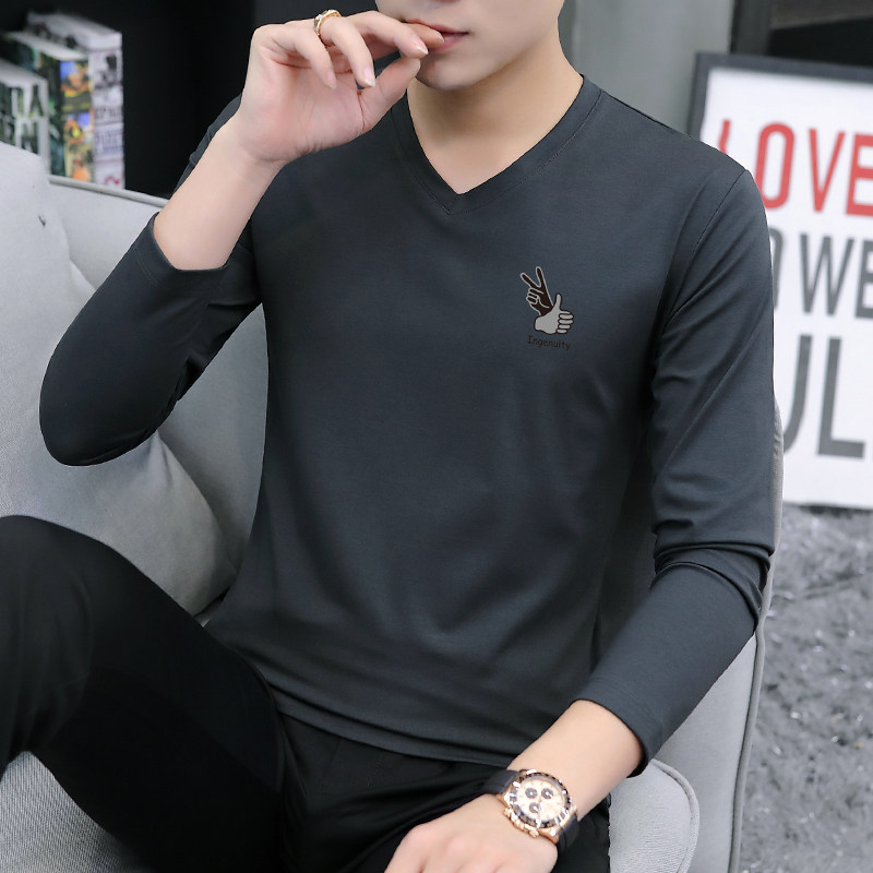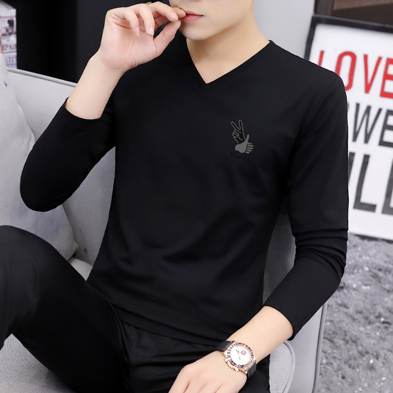 Pure Cotton Spring Autumn Clothes Men T-Shirt Long Sleeve V Collar Spring Dress Casual Blouse 2022 New inner hitch Clothing T-shirts