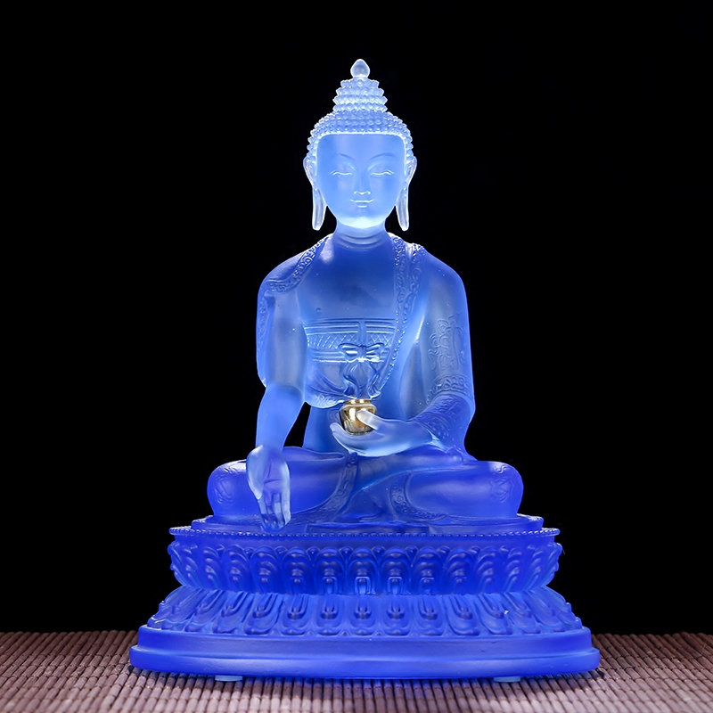 Ancient Law Glazed Drug Master Statue of Buddha Swaying Pieces Home Xuanguan Dedicated to Pharmacist Glazed Light Such as Buddha Blue Pharmacist Seven Buddha