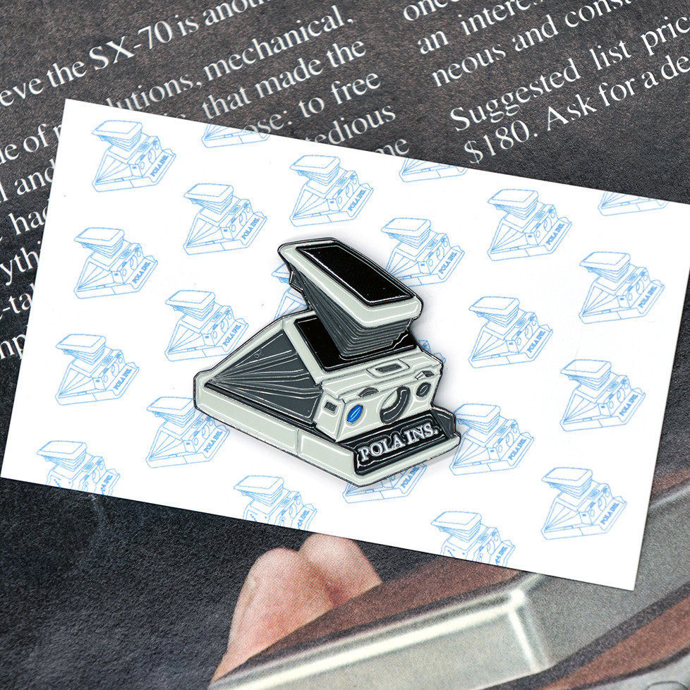 (Study Society Perimeter) Original Baoli to Camera SX-70 Type of Black Leather Blue Button SE Version Metal Badge