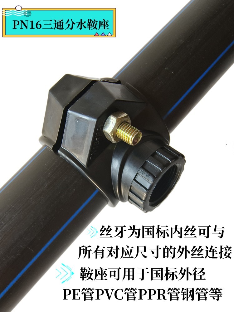 PE Pipe Division Saddle Three Pass Tap Pipe Increase Interface Haff Festival Repair Festival PPR PVC Pipe