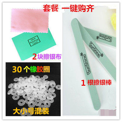 30 pieces of transparent size mixed general package 1=30 rubber ring 2 silver wiping cloth 1 silver wiping stick package 2=30 rubber ring 3 silver wiping cloth 2 silver wiping stick 6mm 30 pcs inner diameter