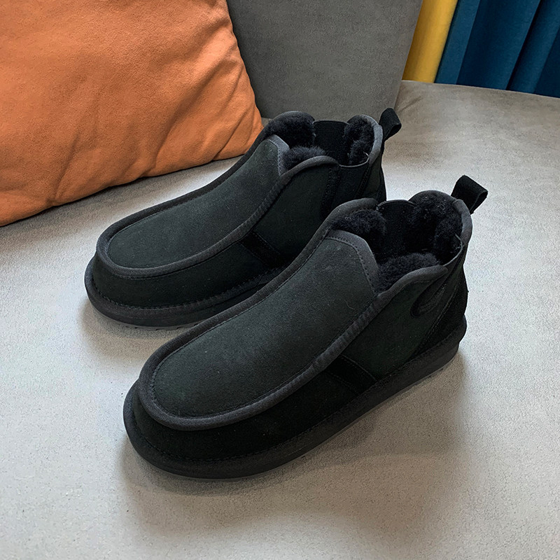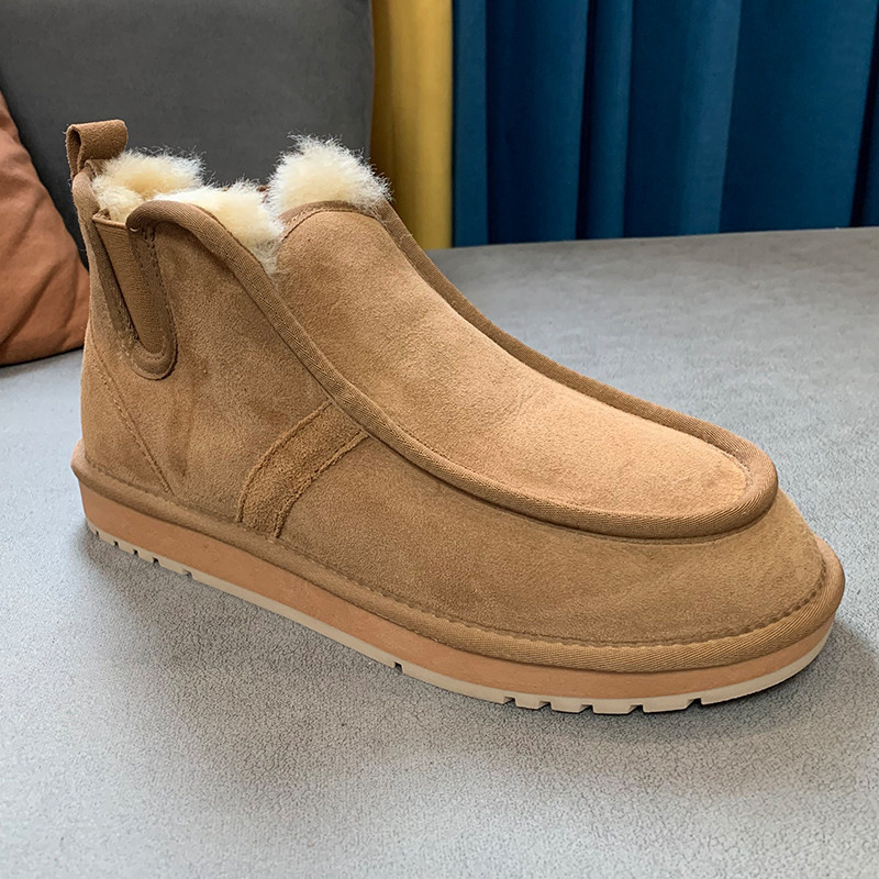 Snowy Boots Male leather wool One winter thickened warm cotton shoes non-slip genuine leather short boots Men's bread shoes