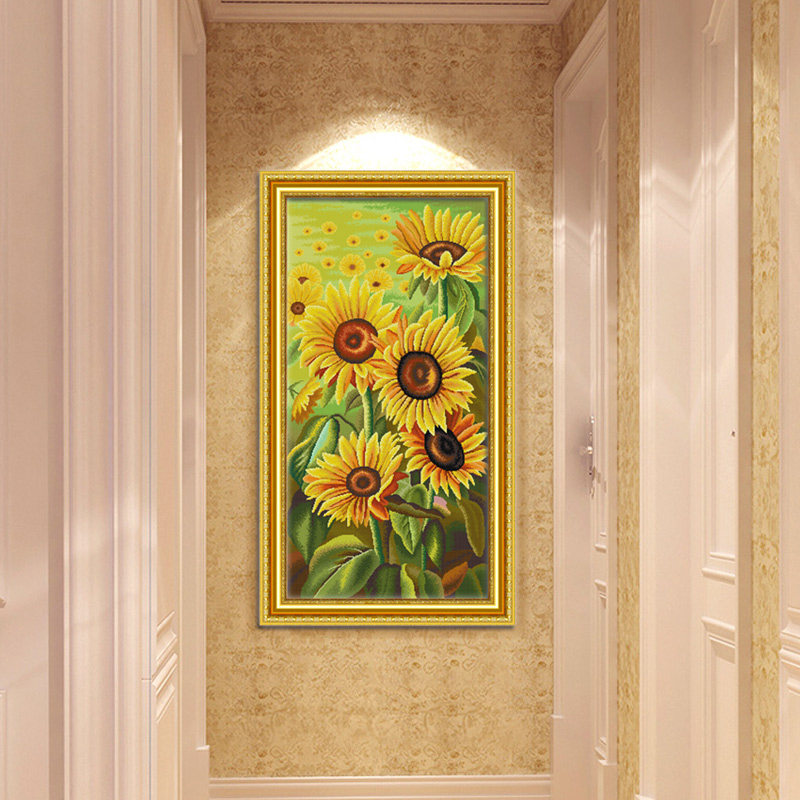 KS Cross Embroidered New Pint Full Embroidered Printed Cloth Vertical version Xuanguan hanging painting Y618286 Chaoyang Sunflower