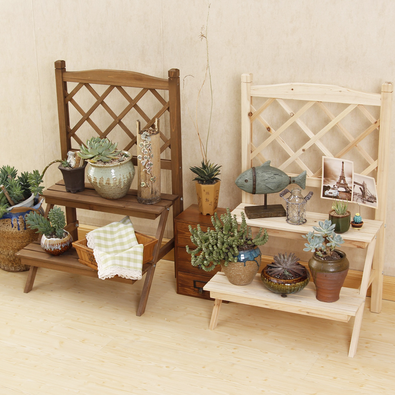 Two-story windowsill, fleshy flower stand, solid wood wooden stand, antique old ladder balcony decoration