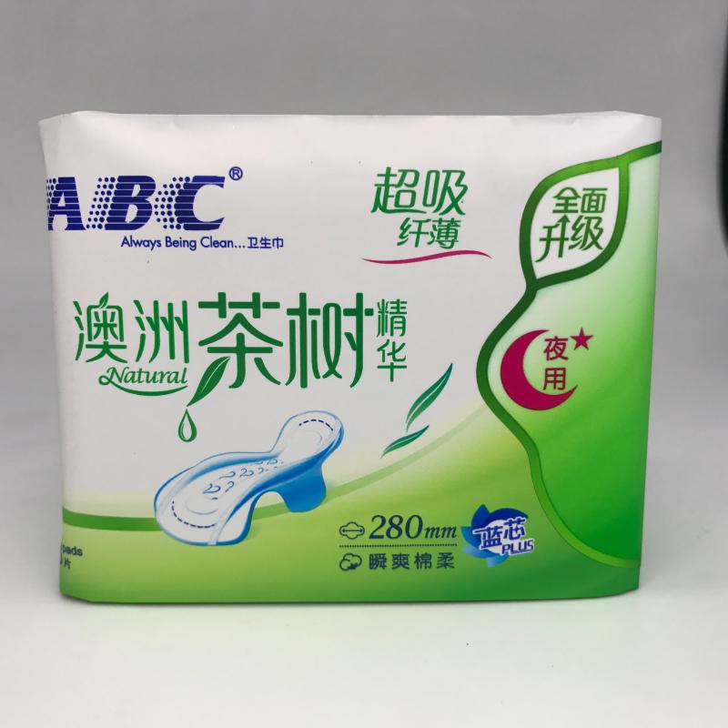 ABC Tea Tree Essence Sanitary Cotton 8 Pieces 280mm Thin Night Instant Mesh Soft Cotton 10 Pack Combination N82