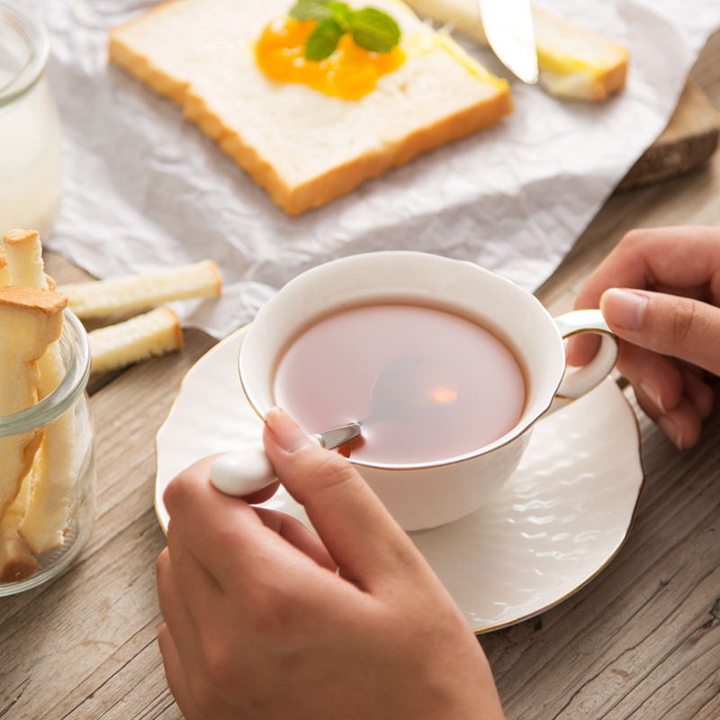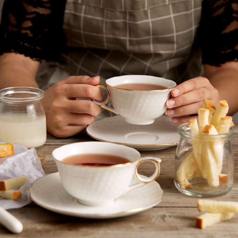 Pure white gold bone china coffee cup Nordic tea cup ceramic afternoon tea cup with black tea cup saucer spoon delivery rack greeting card