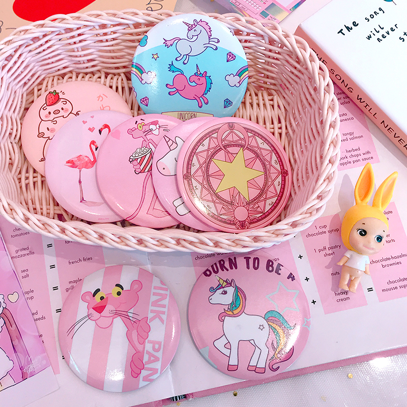 Korean version of cute Flamingo small mirror makeup mirror Pink Leopard makeup mirror Girl cartoon mini portable magic array