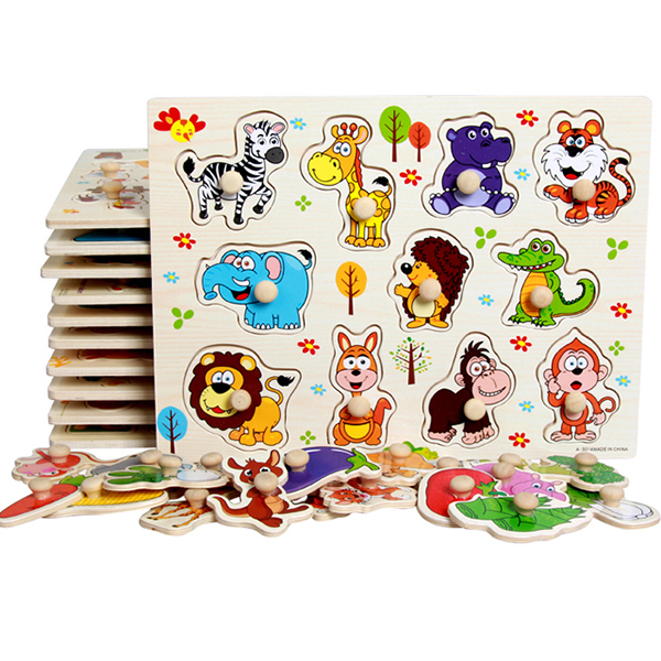 Children's wooden jigsaw puzzle early education toy 1-3 years old toy 2-3-6 year old baby wooden hand grip panel