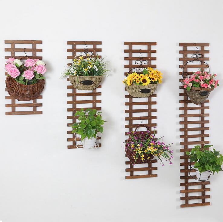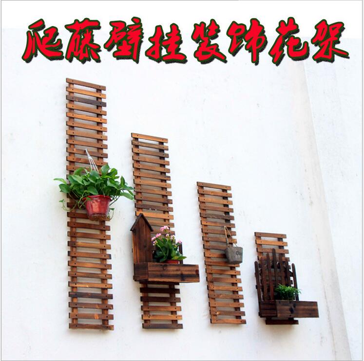 Outdoor carbonation anti-corrosive wood fence solid wood made wall decoration wall-mounted flower shelf patio wall-mounted grid climbing rattan