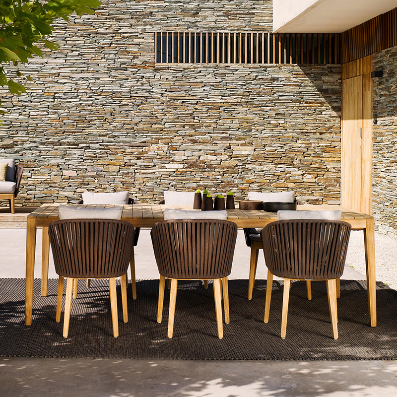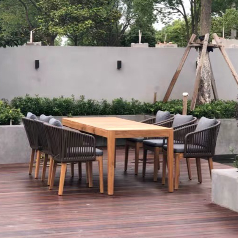 Outdoor tables and chairs courtyard teak rattan chairs villa furniture outdoor balcony rattan chairs open-air leisure antiseptic wood long table