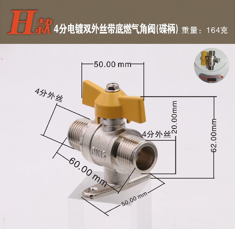 Yuyao all-copper thickened gas valve gas valve gas valve with 4-point ball valve inside and outside wire valve switch nozzle