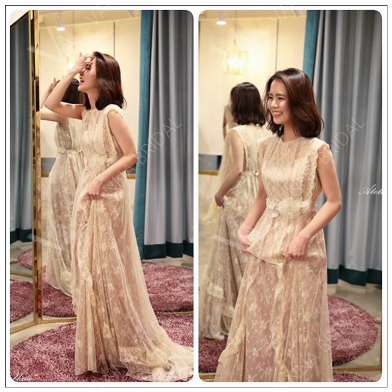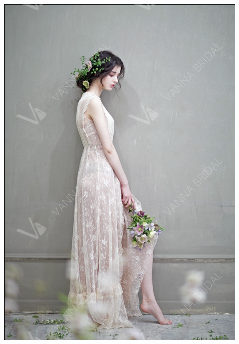 Lawn Wedding Outdoor Wedding Retro Sen Sembodie Beige Champagne Out of light Wedding Dresses Spring Brigades