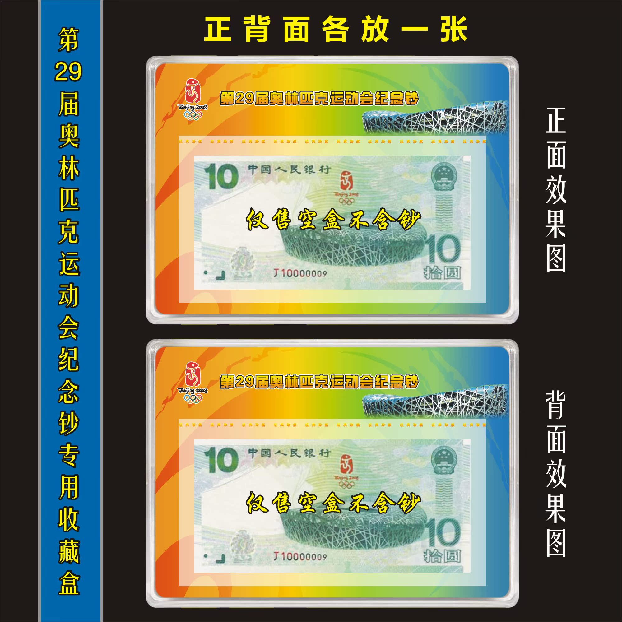 Empty box II Mount 2008 Olympic Commemorative Notes Green Notes RMB10 Commemorative Banknotes Treasure DISPLAY CASE POSITIONING BOOK