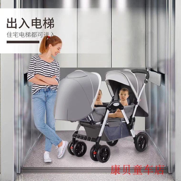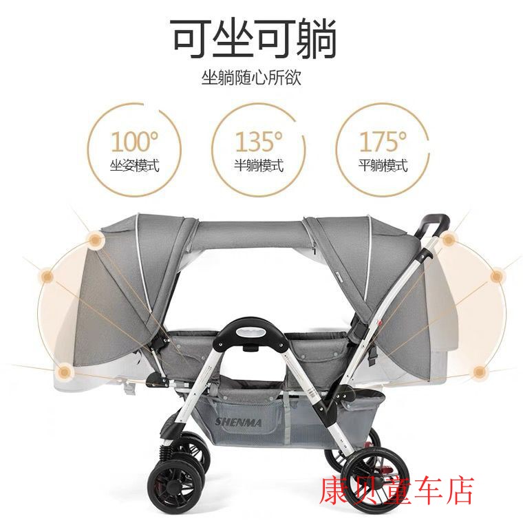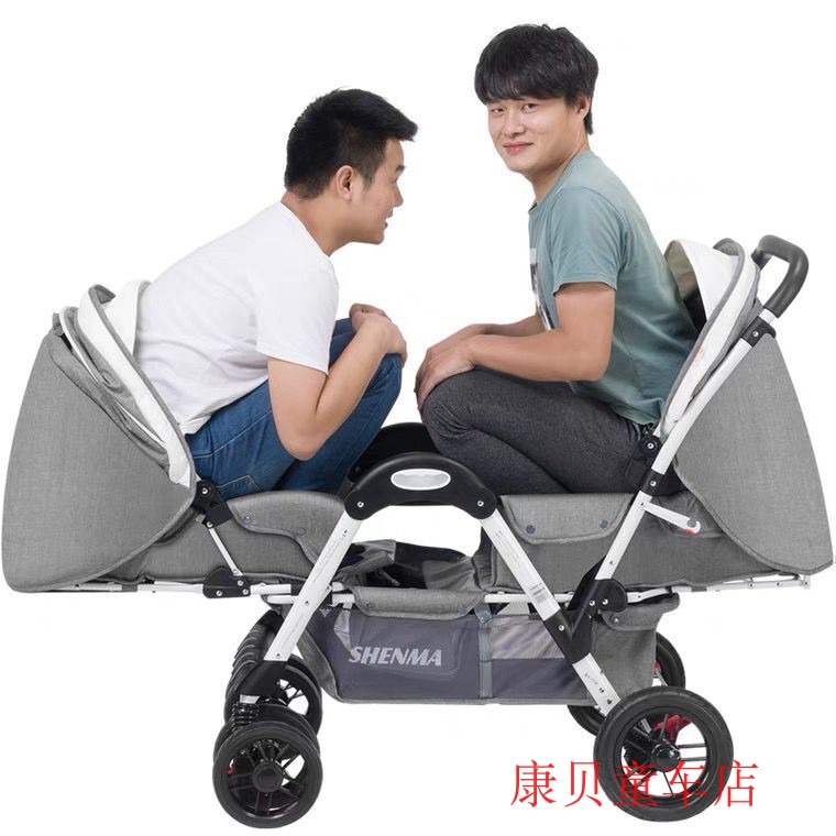 Shenma high landscape twin stroller can sit and lie four-wheel shock-absorbing double car lightweight folding trolley