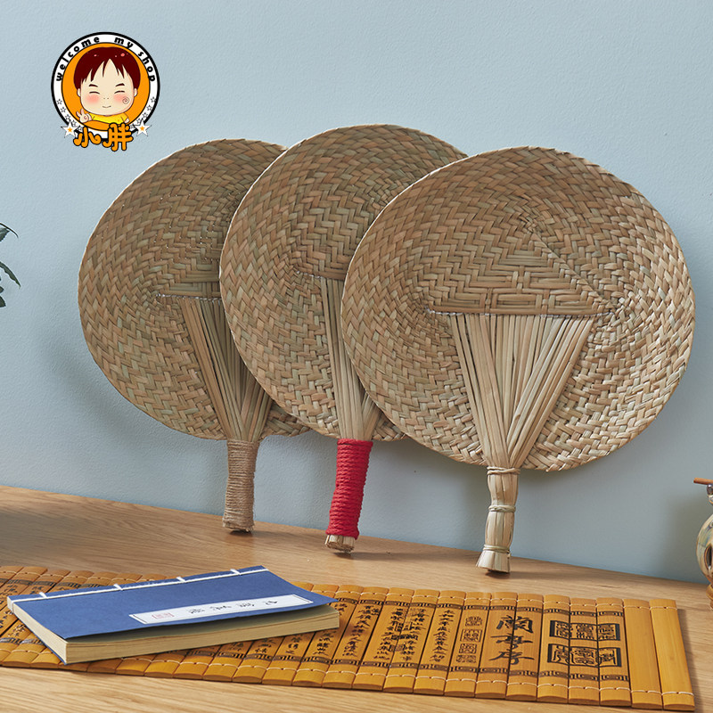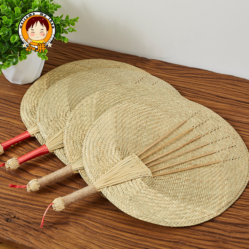 General type Cusa fan General type Cusha fan hemp handle fine woven grass grass fan fine woven grass grass leaf leaf leaf fan big round seagrass fan hemp handle shell fan