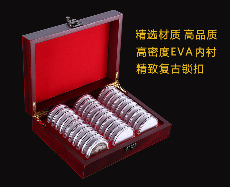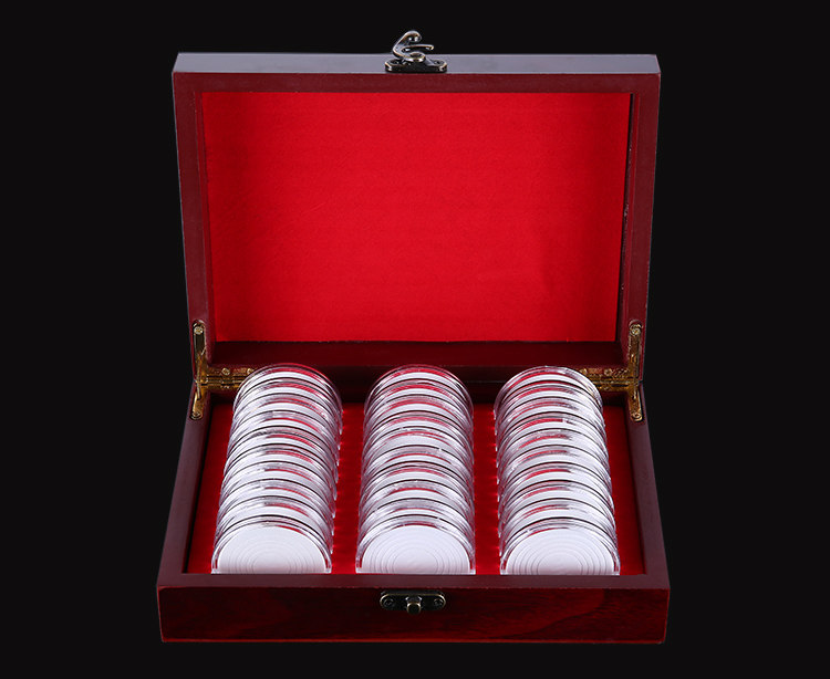 Reform 40 Anniversary commemorative coins collection box silver Yuan Yuan Yuan Yuan coins to protect wooden boxes 30 adjustable small round boxes